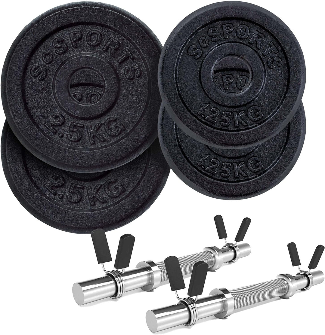 Bara de gantere de 2,5 kg: 35 cm lungime fara fir cu gulere cu arc pentru schimbarea rapida a greutatilor, maner moletat pentru o prindere sigura in timpul antrenamentului