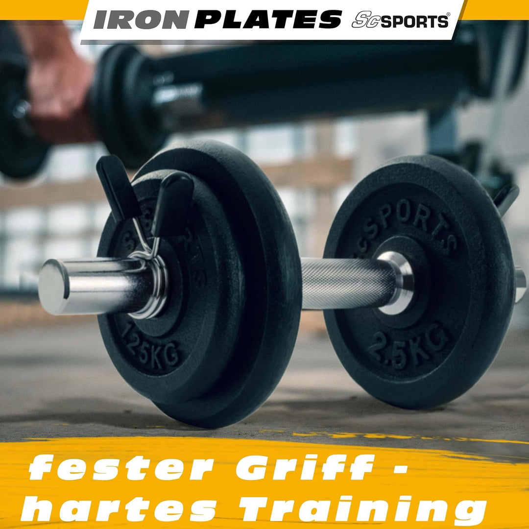 Placi cu greutate solida: material: fonta neagra, diametrul gaurii: 30/31 mm, isi pastreaza forma chiar si la utilizare intensa