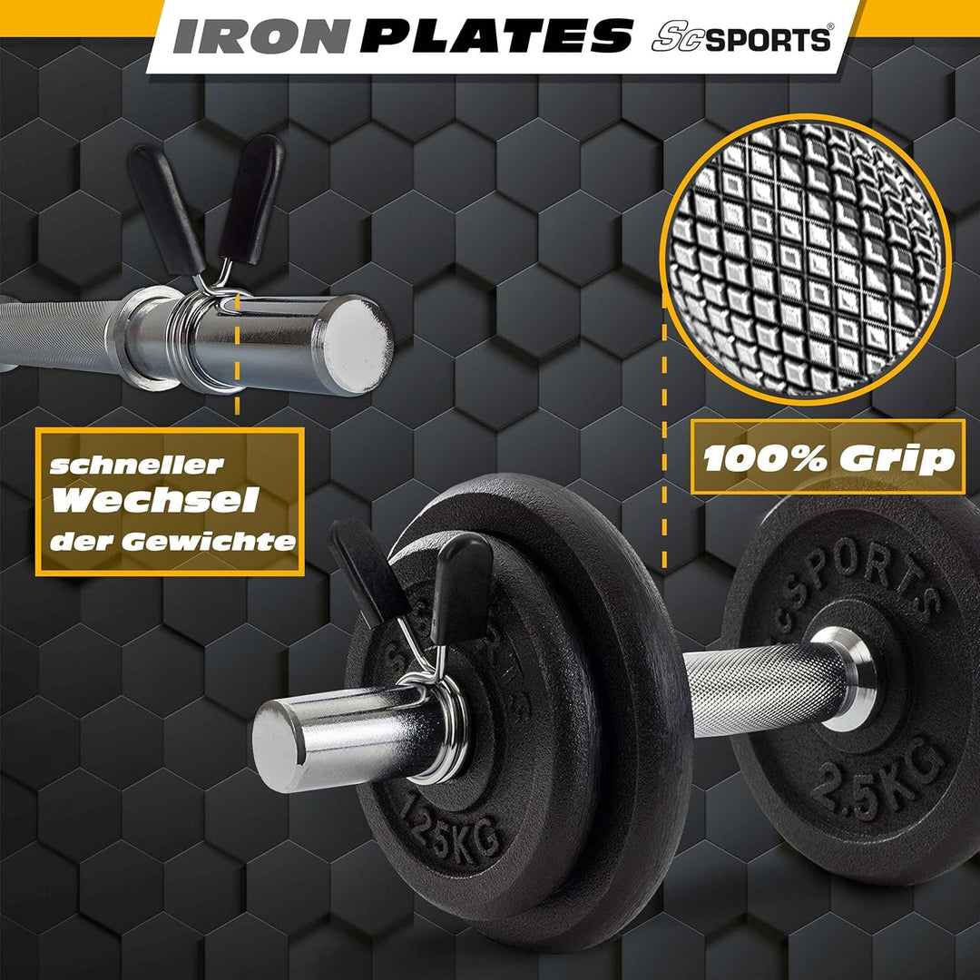 Set de gantere de 10 kg: pentru antrenamentul in sala de sport de acasa, discuri din fonta de inalta calitate si bara de gantere pentru antrenamentul eficient al umerilor si bratelor