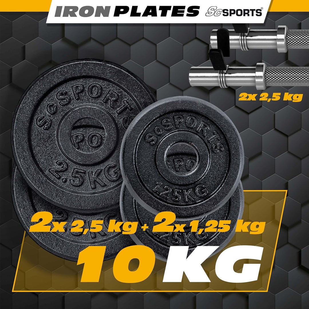 Nu mai puteți adăuga Set de gantere, 10 kg, 2 x 2,5 kg, 2 x 1,25 kg, 6 piese, fonta ScSports în coș.