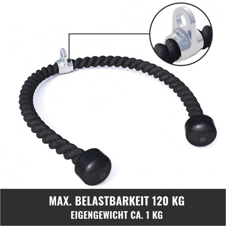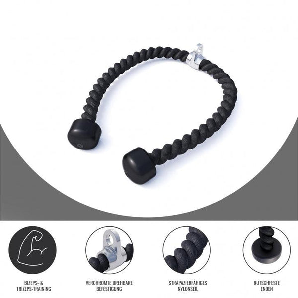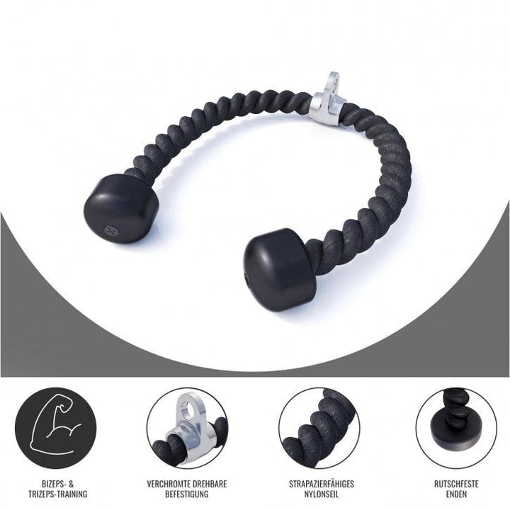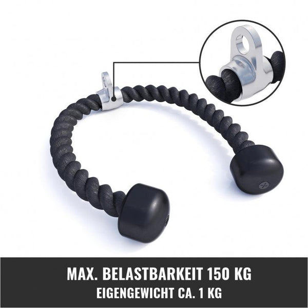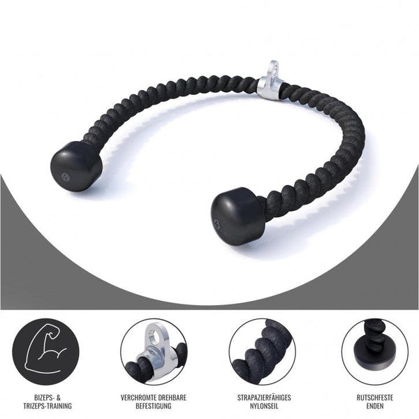 Această frânghie de înaltă calitate este un accesoriu ideal pentru propria sală de forță de acasă. Forma extrem de flexibilă a frânghiei vă permite să antrenați grupe musculare diferite.