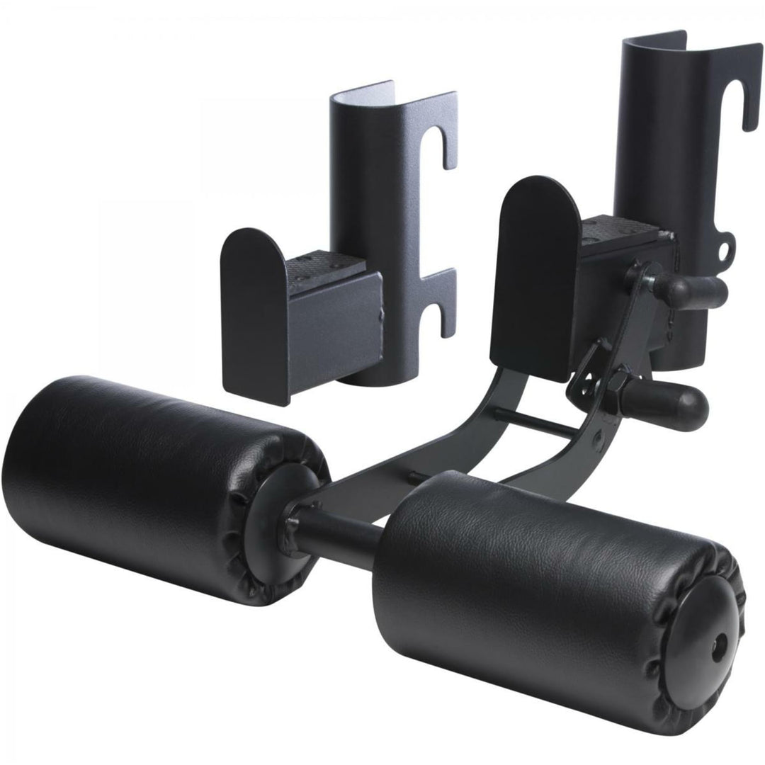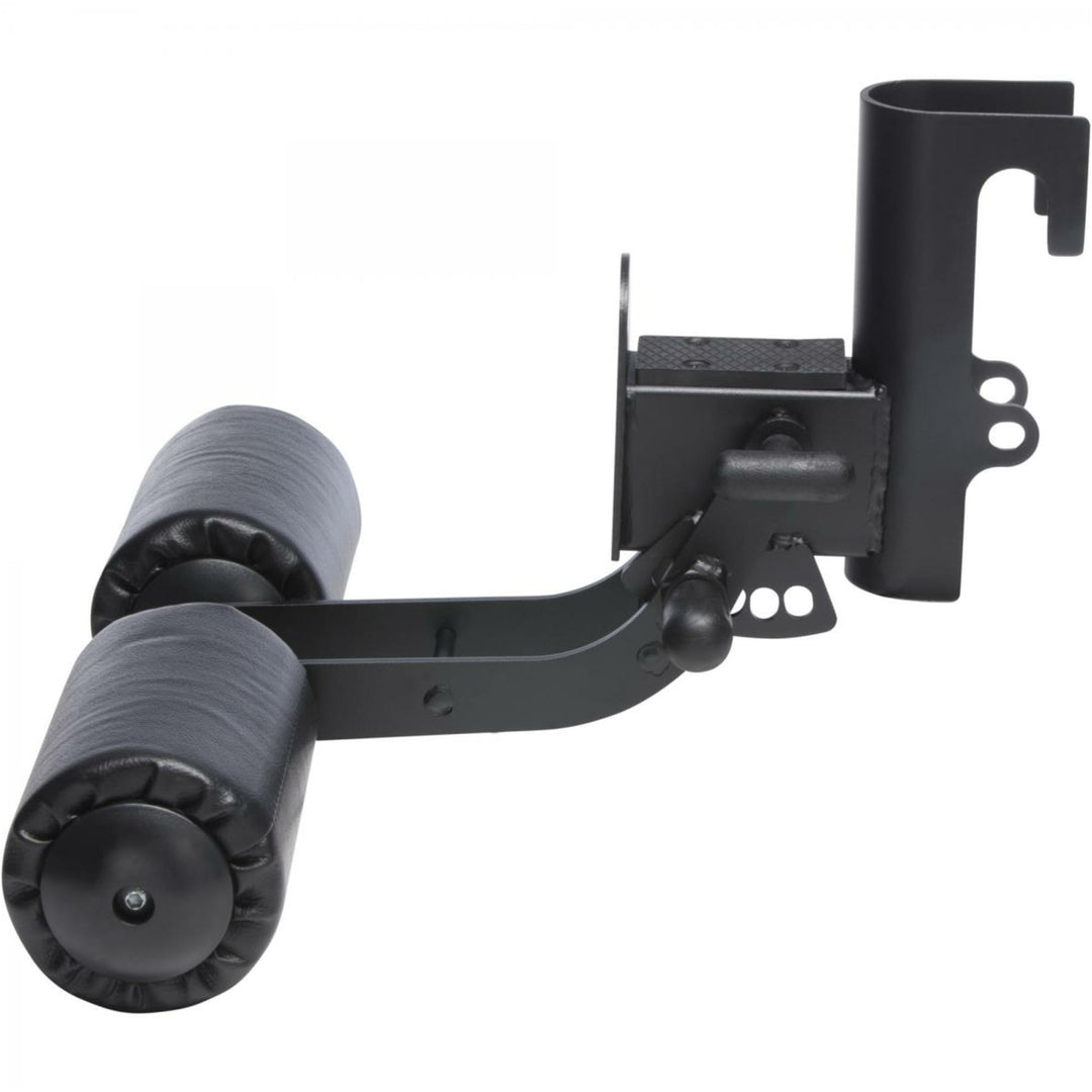 După ce ați atașat antrenorul pentru picioare de la Gorilla Sports la mașina dvs. multifuncțională Smith, aveți un suport stabil, ușor căptușit. Cu aceasta vă fixați picioarele pentru a face abdomene cu sau fără gantere. În funcție de execuția exercițiilor, îți antrenezi mușchii abdominali, ai spatelui și brațelor.
