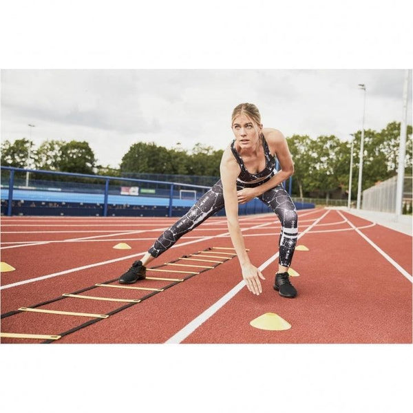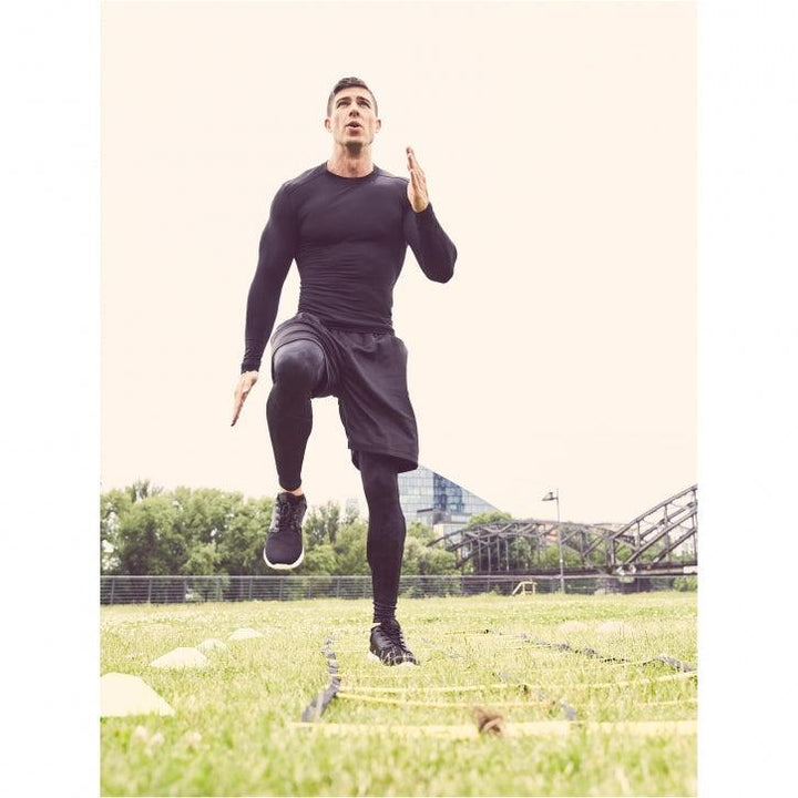 Viteză și precizie – asta contează în multe sporturi. Indiferent dacă vrei să te antrenezi pentru fotbal, arte marțiale sau tenis, scara de coordonare îți oferă numeroase opțiuni de exerciții eficiente. Scara este rulată și așezată pe pământ și servește drept limită pentru secvențele și săriturile tale. Alergi lateral, înapoi sau cu pași în lateral. Începeți încet să exersați pașii și creșteți treptat viteza.