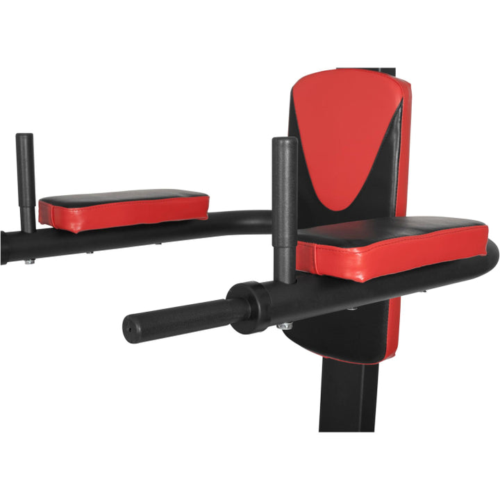 Statia multifunctionala combina patru dispozitive de inalta calitate pentru antrenamentul tau de forta intr-o singura statie care economiseste spatiu, cu o lungime de 85, adancime de 120 si inaltime de 235 de centimetri. Inclinatia sa de 10% va sustine antrenamentul si va asigura pozitia, cotierele sale sunt captusite, iar spatarul este echipat cu suport lombar.