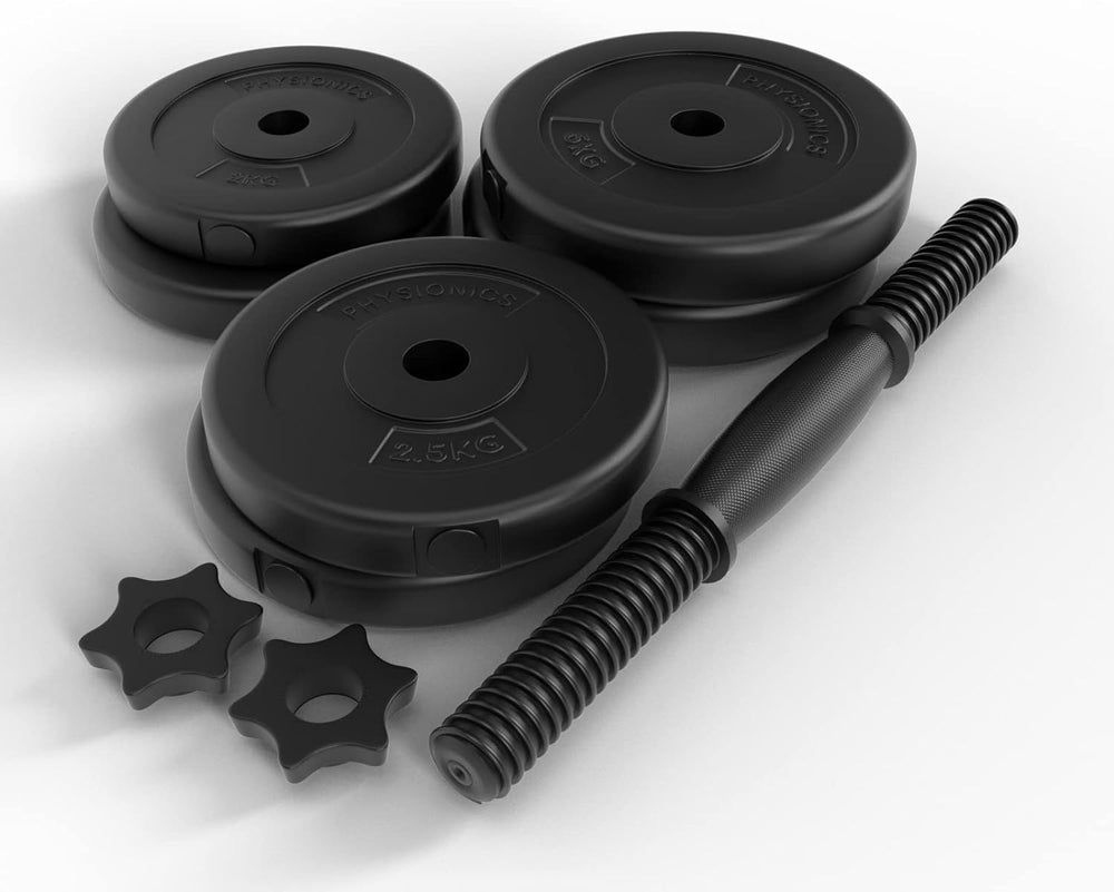 Banca multifunctionala de antrenament cu suport pentru haltere si set de greutati, 40 kg PHYSIONICS