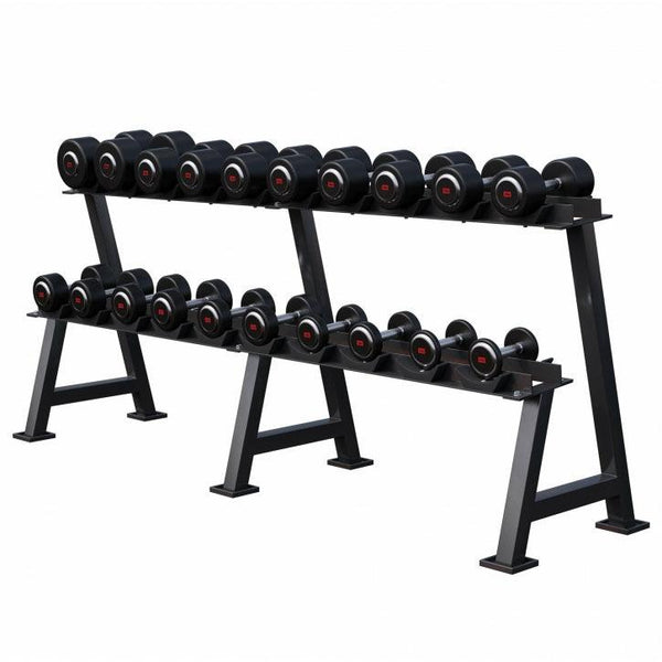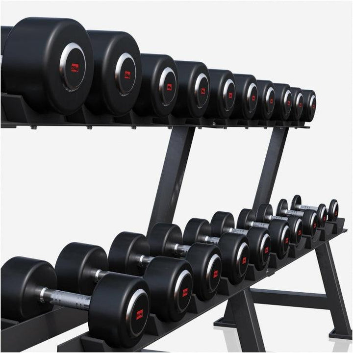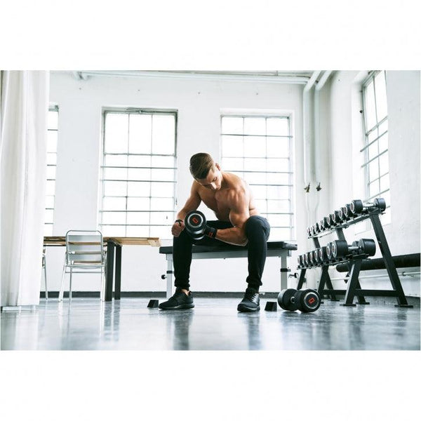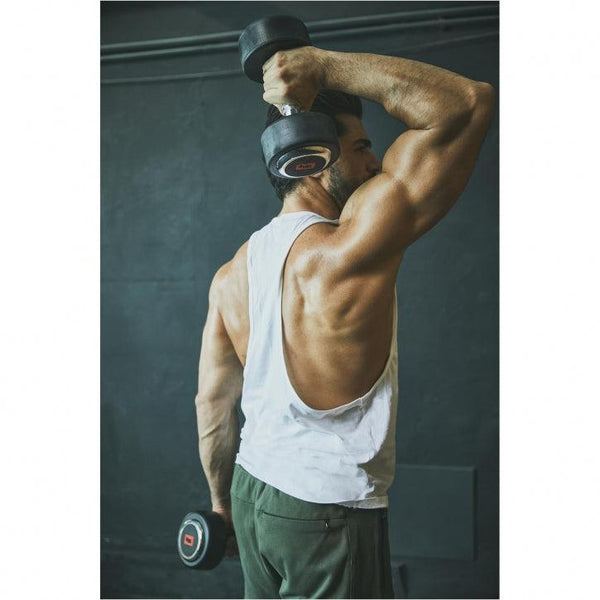 Pentru antrenamentul tău în sală sau acasă, o ganteră cu cauciuc este un instrument perfect pentru exerciții. Întărește mușchii brațelor și partea superioară a corpului. Începeți cu o încărcare moderată dacă doriți să vă dezvoltați mai întâi mușchii și să vă protejați articulațiile. Această ganteră este potrivită pentru sporturile profesionale. Are un strat gros de cauciuc care îl face liniștit și ușor de pus jos. Bara acestei gantere este prevazuta cu profil antiderapant. Deci stă perfect în mână fără să alunece. Indicația de kilogram de pe lateral este evidențiată cu roșu, astfel încât să fie mai vizibilă și să atragă imediat privirea. Puteți comanda această ganteră în diferite clase de greutate până la 50 de kilograme.