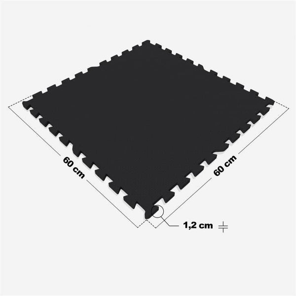 Covorașe pentru sală de sport sau acasă. Setul de covorașe Gorilla Sports constă în 8 covorașe, fiecare cu dinți interconectați, astfel încât să se potrivească perfect. Fiecare dintre covorașele pătrate are o lungime laterală de 60 cm și o grosime de 12 mm. Setul este disponibil în negru, gri, roșu, albastru, efect lemn și efect lemn închis.