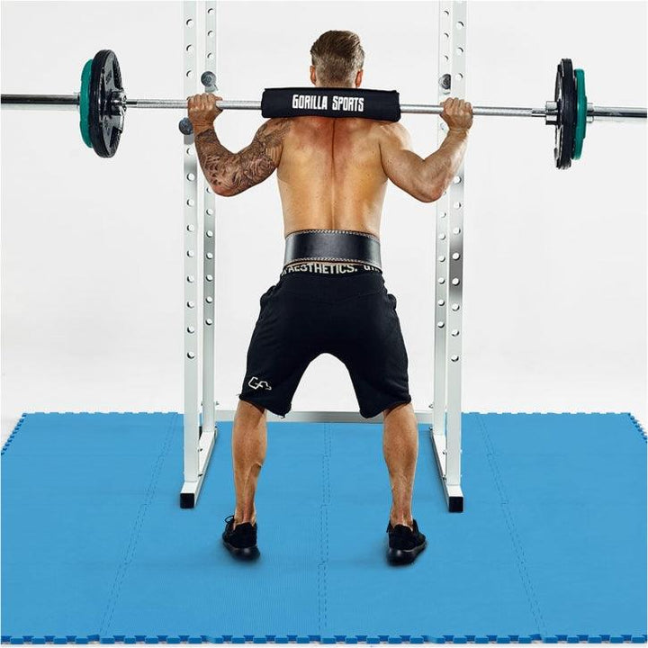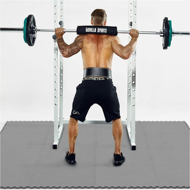 Covorașe pentru sală de sport sau acasă. Setul de covorașe Gorilla Sports constă în 16 covorașe, fiecare cu dinți interconectați, astfel încât să se potrivească perfect. Fiecare dintre covorașele pătrate are o lungime laterală de 60 cm și o grosime de 12 mm. Setul este disponibil pe negru, gri, roșu, albastru, efect lemn și efect lemn închis.