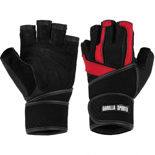 Manusile de antrenament includ bandaj articular negru/rosu in diferite dimensiuni