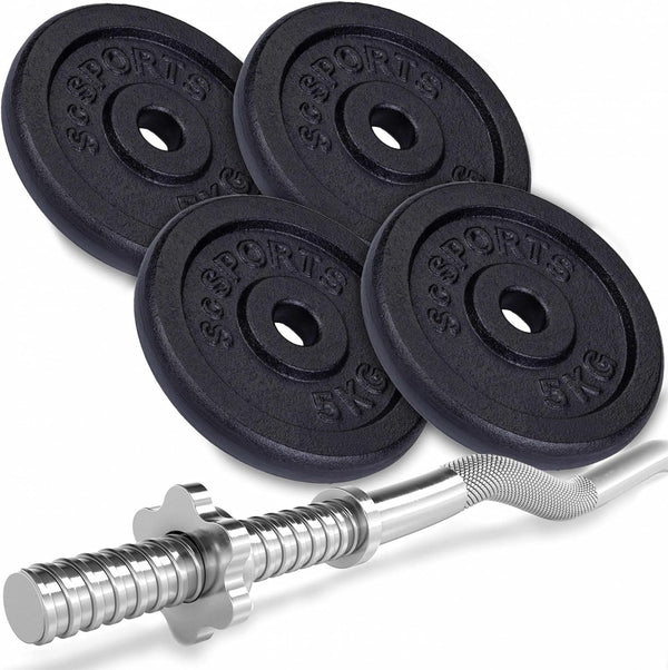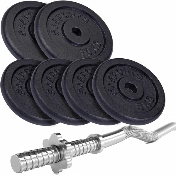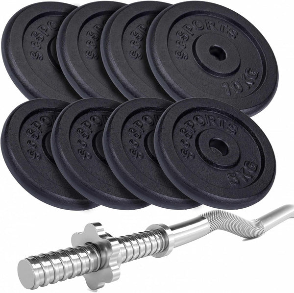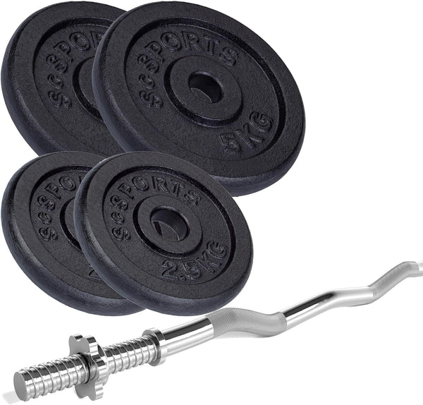 Set haltera, bara curl si discuri, 15 KG, fonta, negru ScSports