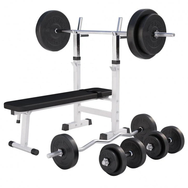 BANCĂ REGLABILĂ PIEPT CU SUPORT + SET DE GREUTĂȚI 100 KG 30/31 MM , ALBA Gorilla Sports