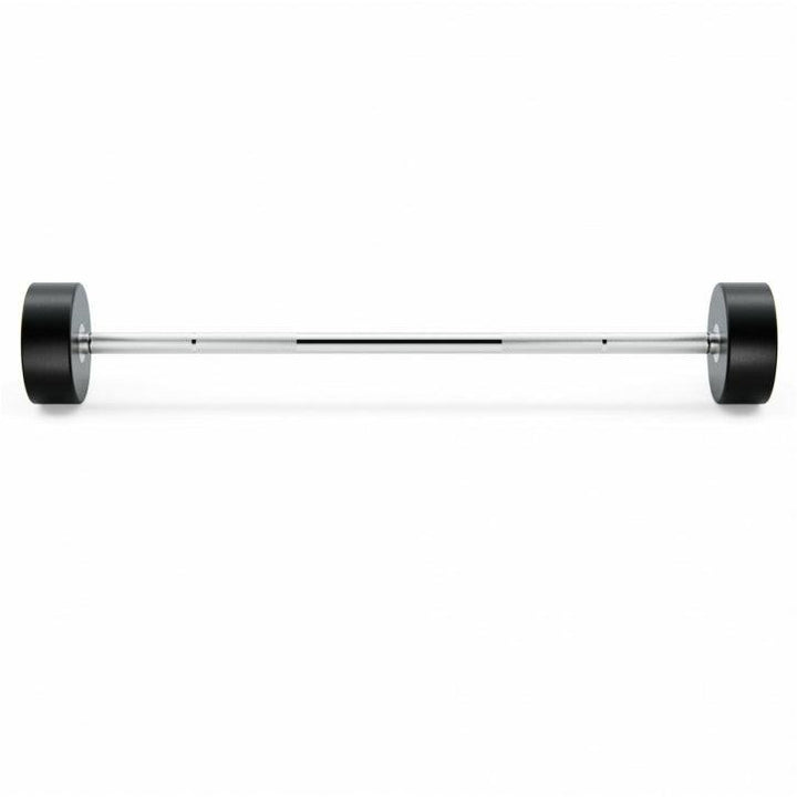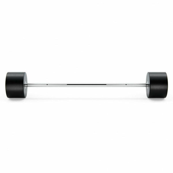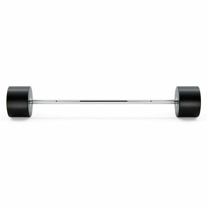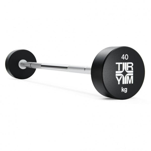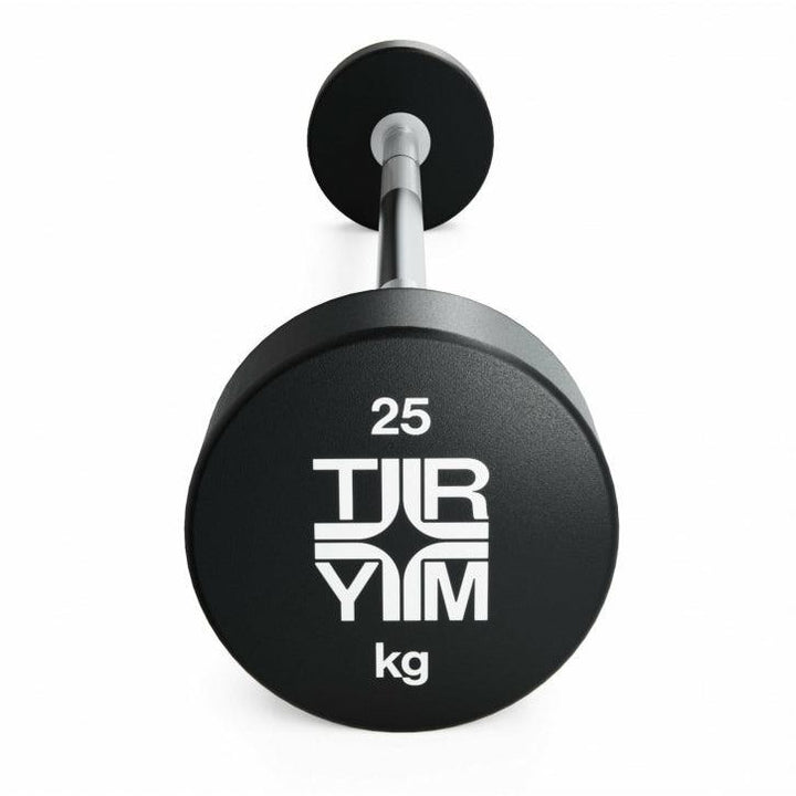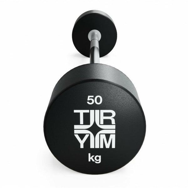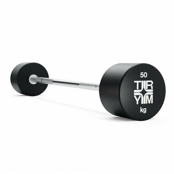 Bara preincarcata Trym este fabricata din cele mai bune materiale utilizate in fabricarea halterelor compacte. Capetele greutatii sunt formate din miezuri solide de otel acoperite cu poliuretan de inalta calitate. Spre deosebire de alte haltere PU sau haltere compacte, barele preincarcate sunt fabricate din CPU (poliuretan turnat) si nu TPU (poliuretan termoplastic). Avantajele CPU fata de alte materiale, cum ar fi cauciucul sau TPU, sunt rezistenta excelenta la uzura, rezistenta ridicata a materialului (de 3-5 ori mai mare decat cauciucul obisnuit), elasticitatea ridicata si absorbtia socurilor, ceea ce face barele preincarcate mai rezistente. Aceste proprietati fac materialul ideal pentru utilizarea in produse precum haltere, discuri de greutate si haltere compacte. Capetele de greutate ale barei preincarcate Trym sunt sudate la un maner drept cromat, formand o unitate solida. Manerul are o lungime de 890 mm, un diametru de 32 mm si ofera o aderenta buna datorita knurling/knurling. Capetele greutatilor au o suprafata neagra mata, cu un logo Trym alb integrat in centru si numere de greutate clar recognoscibile. Diametrul si grosimea greutatilor variaza in functie de unitatea de kilogram. Halterele compacte sunt disponibile de la 10 kg la 50 kg in trepte de 5 kg. Datorita proprietatilor excelente ale materialului, haltera nu numai ca este inodora si rezistenta la nivelare, dar isi pastreaza si forma pentru mai mult timp, chiar si la sarcini foarte mari.