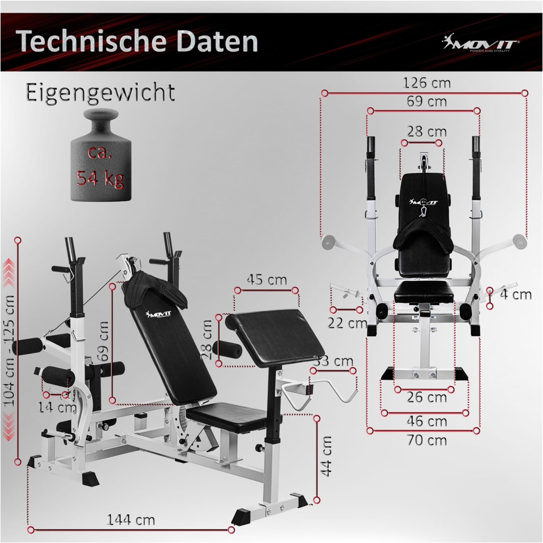 Banca multifunctionala MOVIT "PRO" nclusiv setul ce cuprinde: bara si gantere cu o greutate totala de 60 kg!
