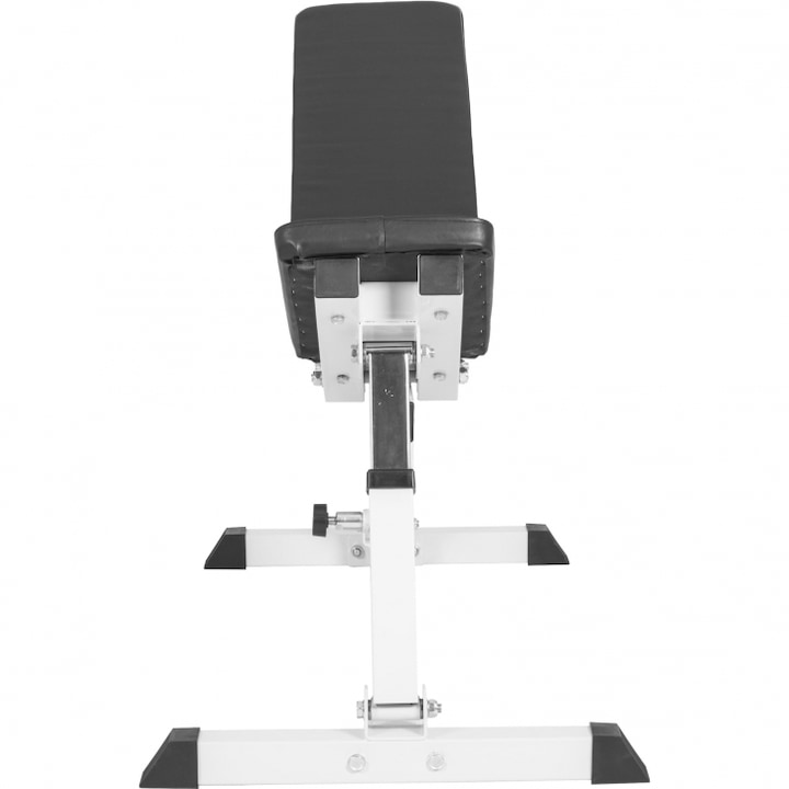 Unghiul de înclinare al spătarului și al pernei scaunului vă oferă control total asupra exercițiilor. Ajustarea rapidă a șurubului de blocare asigură unghiul perfect cu o singură mișcare, blocarea este apoi fermă, astfel încât să puteți lucra și cu greutăți mari. Picioarele de protecție sunt cauciucate, ceea ce garantează un suport stabil și sigur și protejează podeaua. Puteți găsi banca în culorile alb și negru.