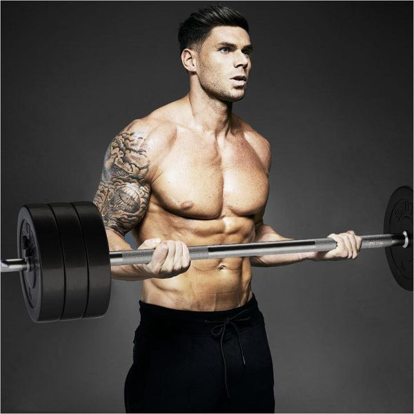 - setul de 38 kg Include o bară de 120 cm cu două cleme cu 6 discuri de 5 kg