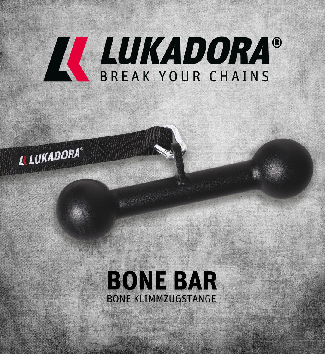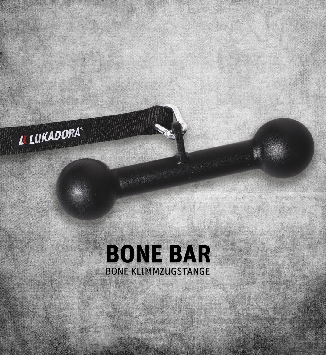 - LUKADORA® Bone Bar este ideală pentru antrenamentul forței de prindere, spate, biceps și triceps
