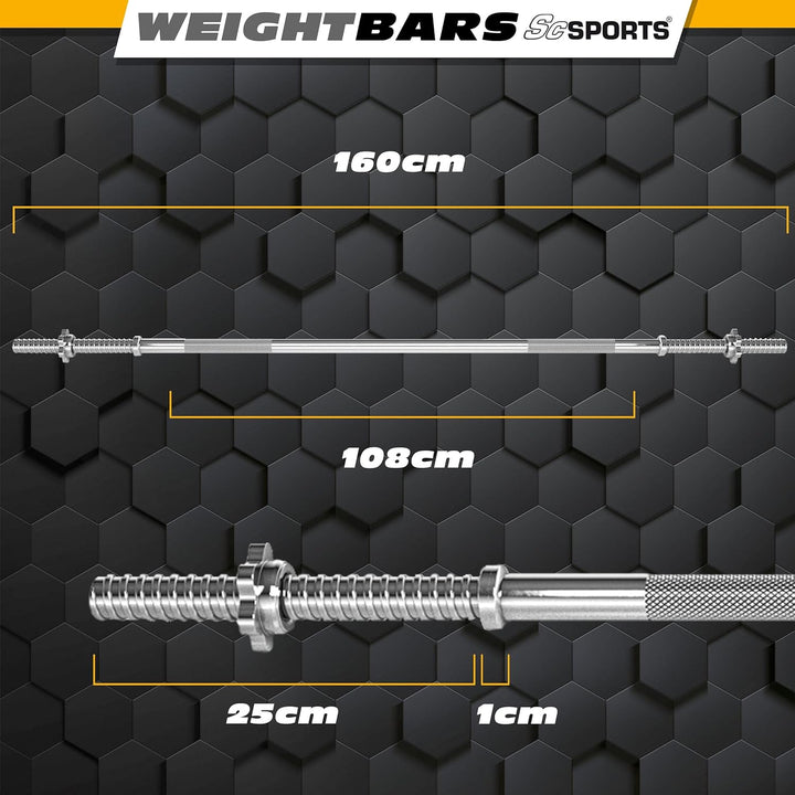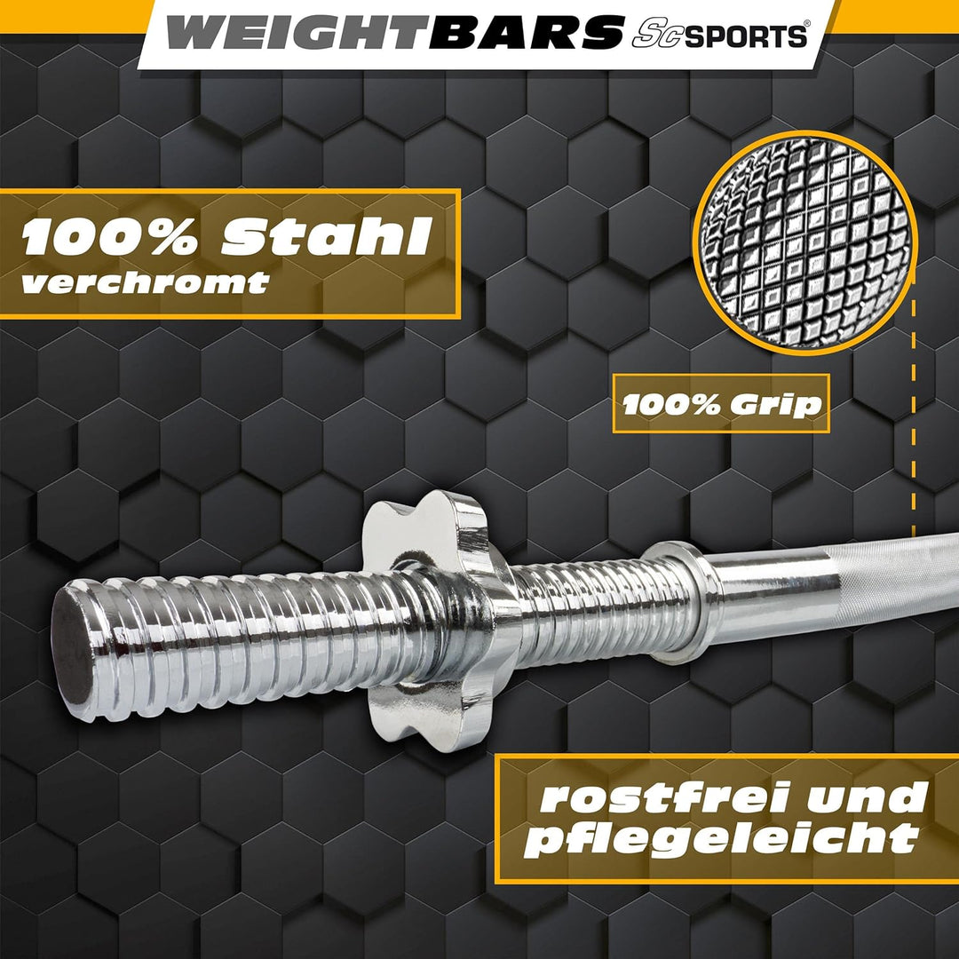 Bara cu o lungime de 160 cm din otel cromat de inalta calitate, cu o durata lunga de viata pentru un antrenament muscular eficient