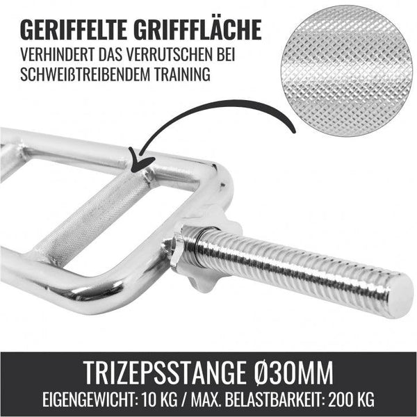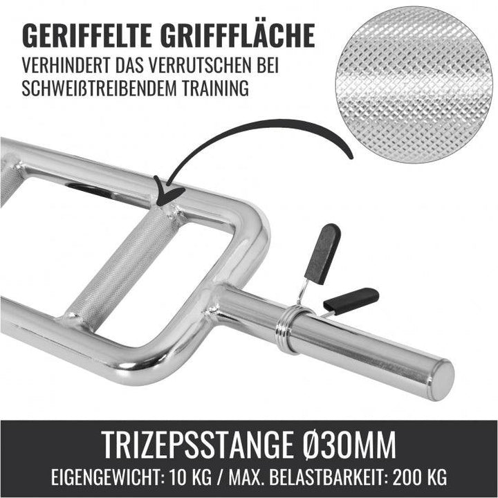 Nu mai puteți adăuga Bara triceps, 86 cm, cu prinderi pentru greutati, Metalic/Argintiu Gorilla Sports în coș.
