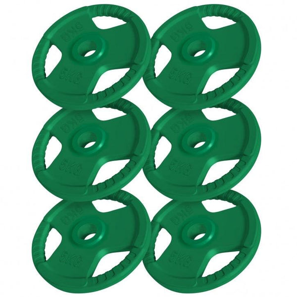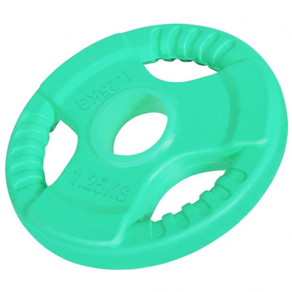 Discurile olpimpice are un interior din fontă care este acoperit cu un strat de cauciuc. Datorită celor trei deschideri canelate, puteți utiliza discul fără accesorii.