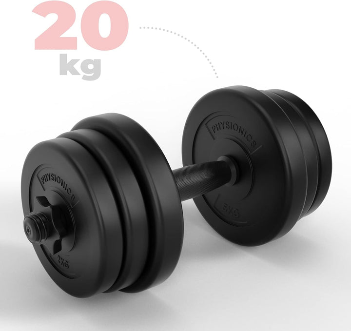 Gantera de 20 kg, maner zimtat, diametru 25 mm, din plastic si otel, coliere spinlock PHYSIONICS