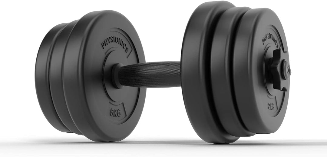 Ușor de utilizat: toate cele șase plăci de greutăți sunt fixate ferm pe colierele spinlock; carcasa din plastic fără jimți impiedică deteriorarea podelei
