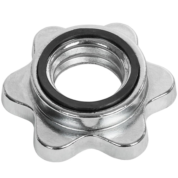 Bare pentru gantere: piulite cu stea si barele din otel cromat, suport disc 30mm (standard), inele de cauciuc pe interiorul barei si pe piulitele stea, asigura o mai buna fixare a discurilor de greutate fara zdranganit.