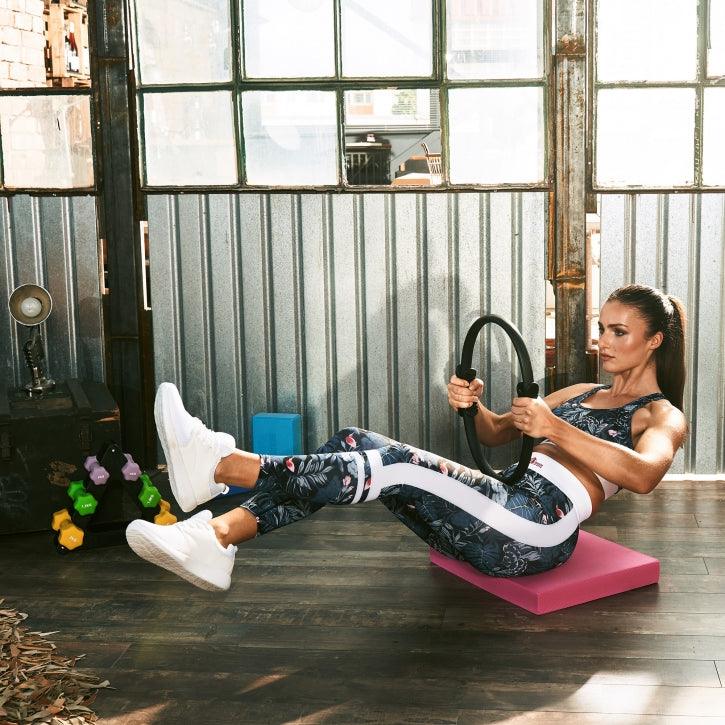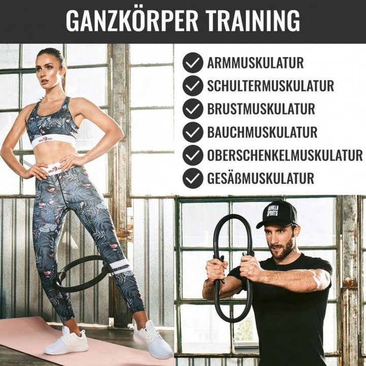 Antrenamentul cu inelul Pilates necesită puțin spațiu și este extrem de eficient datorită principiului contrapresiunii. Îți încordezi corpul și lucrezi împotriva rezistenței inelului în același timp ce efectuați diferite exerciții. Execuția controlată și postura corectă, pe lângă tensiunea corporală maximă, contribuie semnificativ la intensitatea acestui antrenament.
