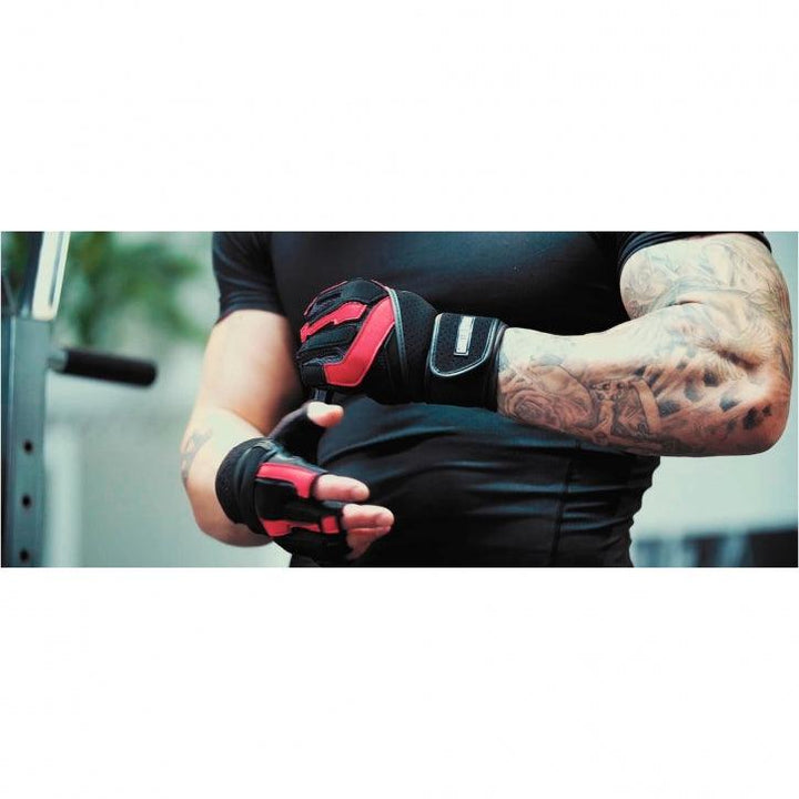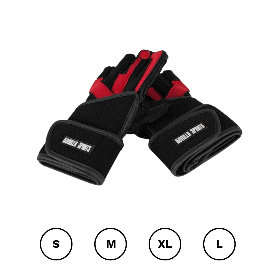 Manusile de antrenament includ bandaj articular negru/rosu in diferite dimensiuni