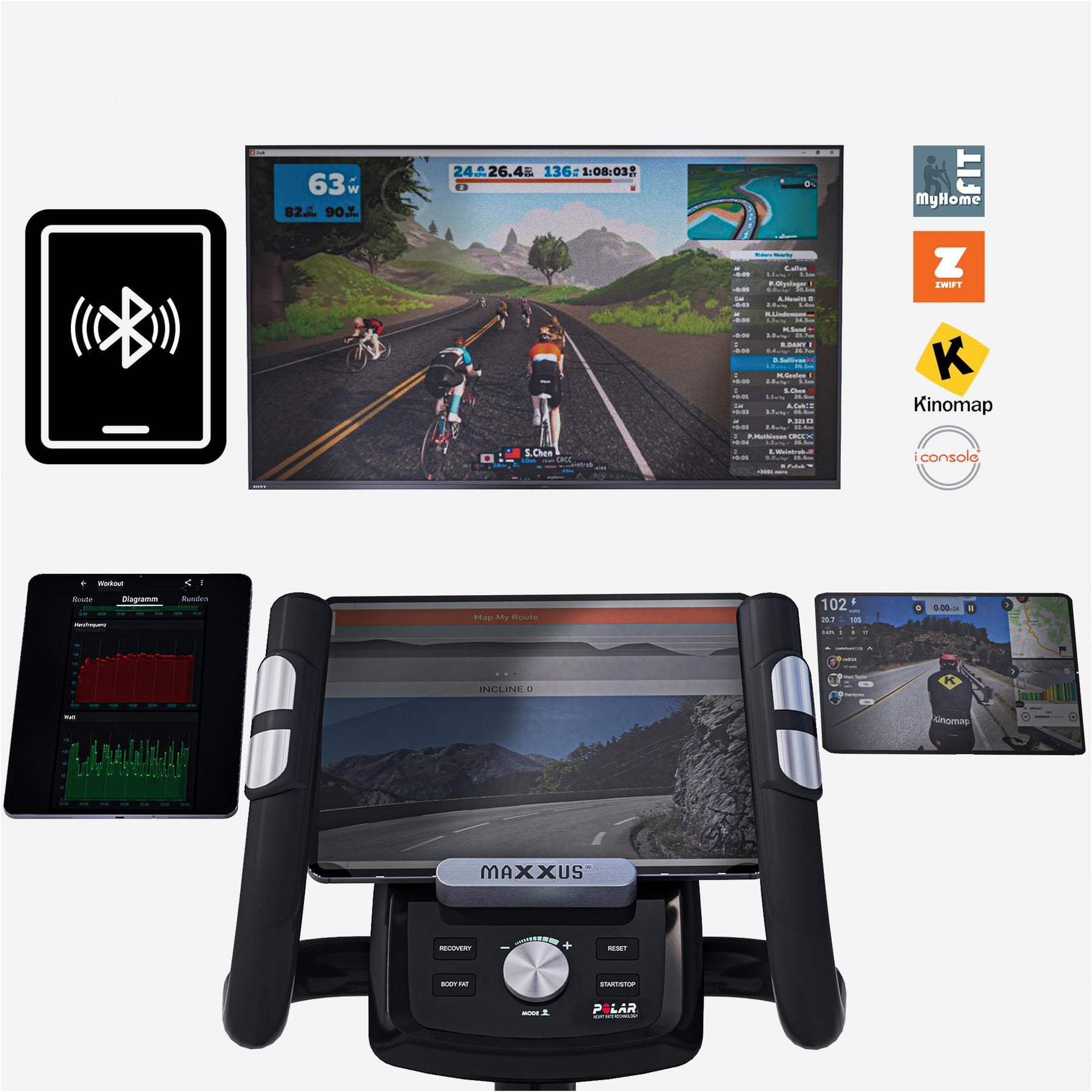 Cabina de antrenament este prevăzută cu o conexiune Bluetooth pentru a controla antrenorul prin intermediul aplicației iconsole+ cu un smartphone sau o tabletă. Aplicația iconsole+ poate fi descărcată gratuit de pe Google Play și App Store pentru sistemele de operare Android și Apple și nu este inclusă în pachetul de livrare. Versiunea actuală Bluetooth 4.0 este necesară pentru a conecta cabina de pilotaj la un smartphone sau o tabletă PC.