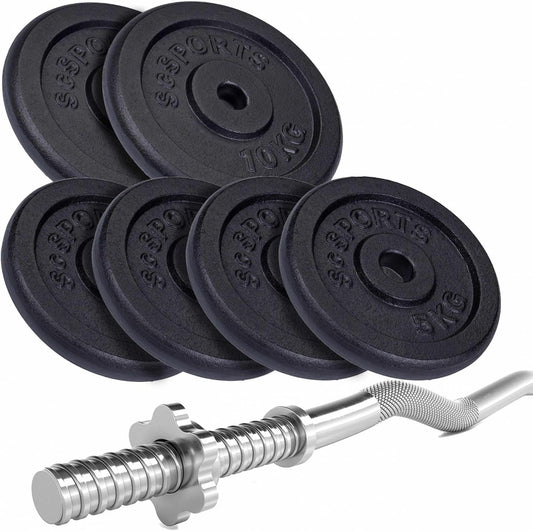 - 2 x 5 kg 25 cm (diametru, 34 mm grosime)