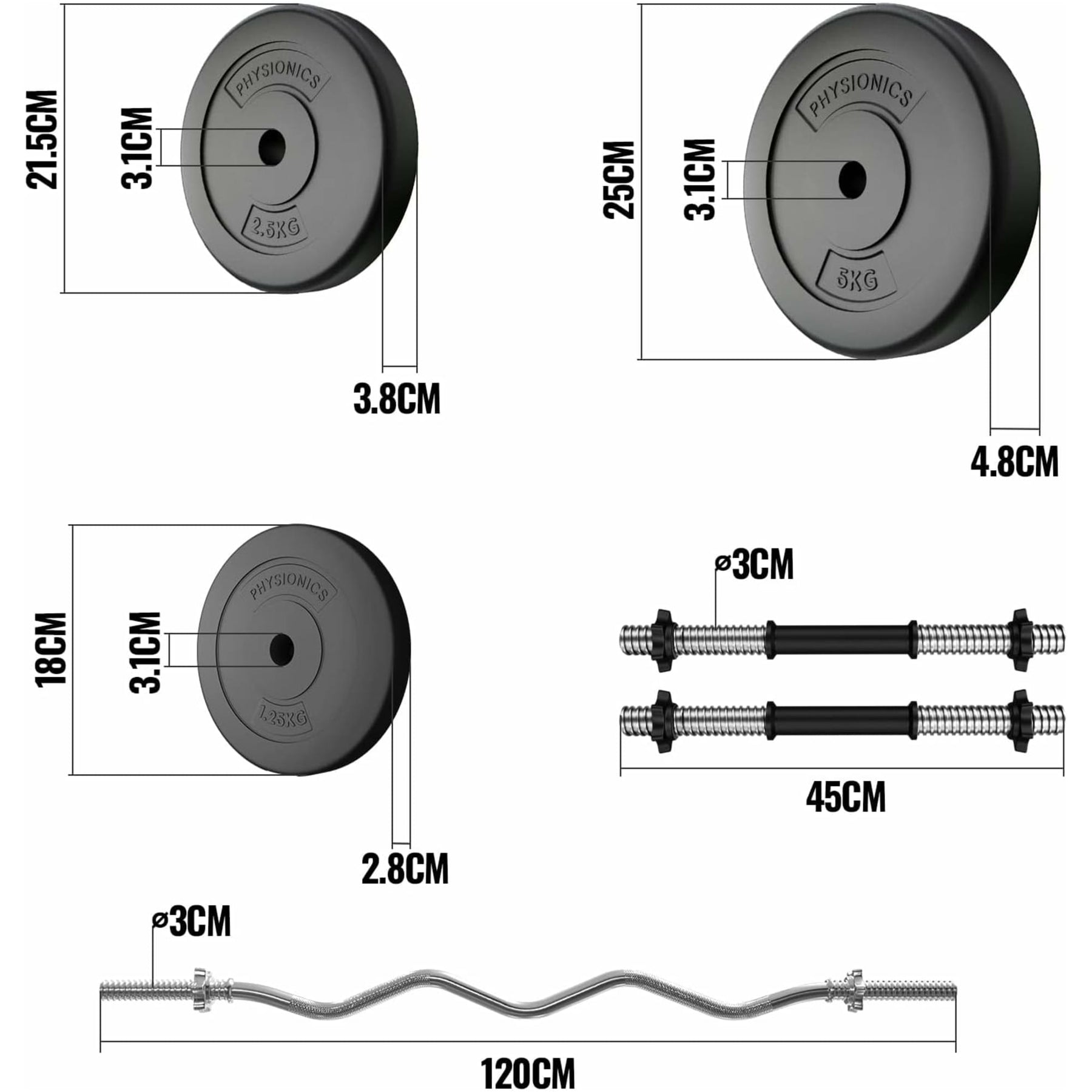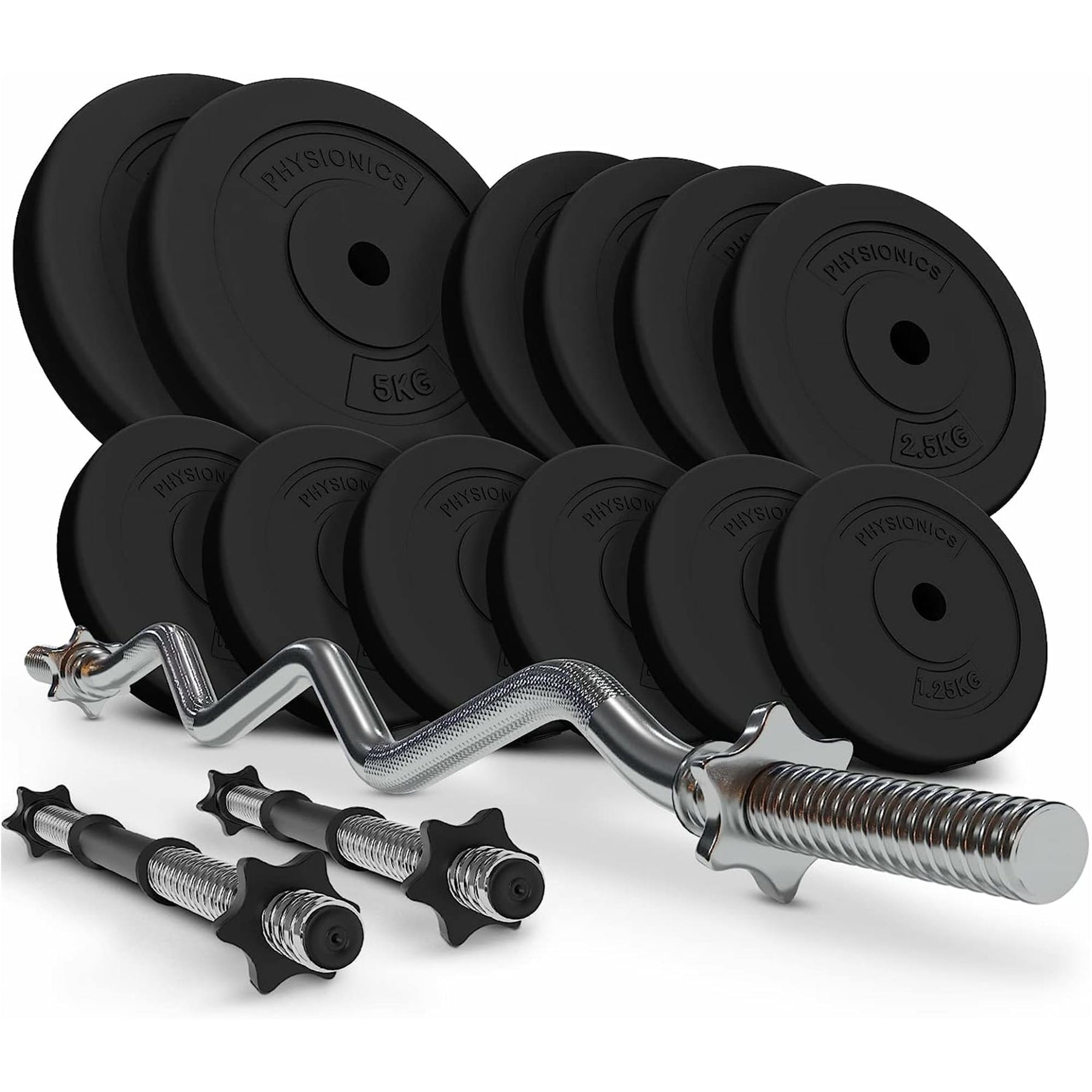 Nu mai puteți adăuga Set bara Z + gantere din plastic umplute cu ciment, 36 - 76 KG PHYSIONICS în coș.