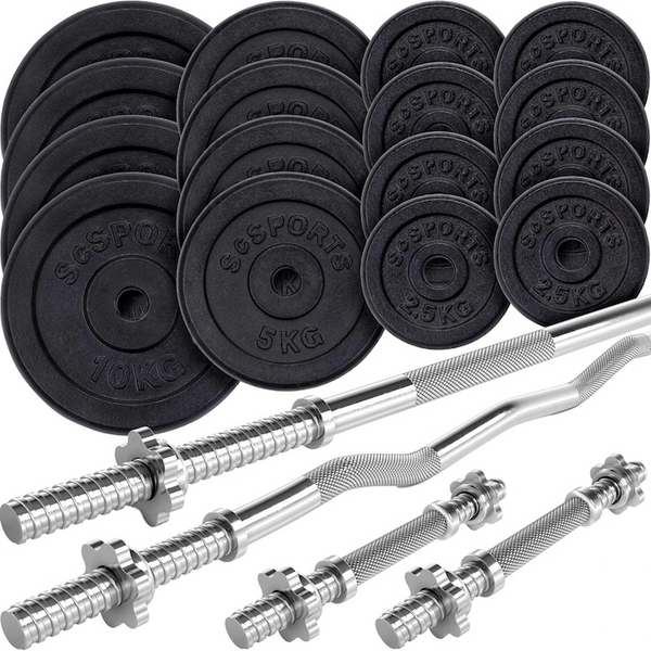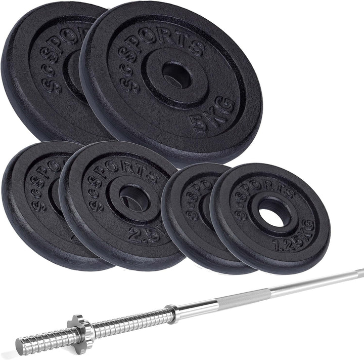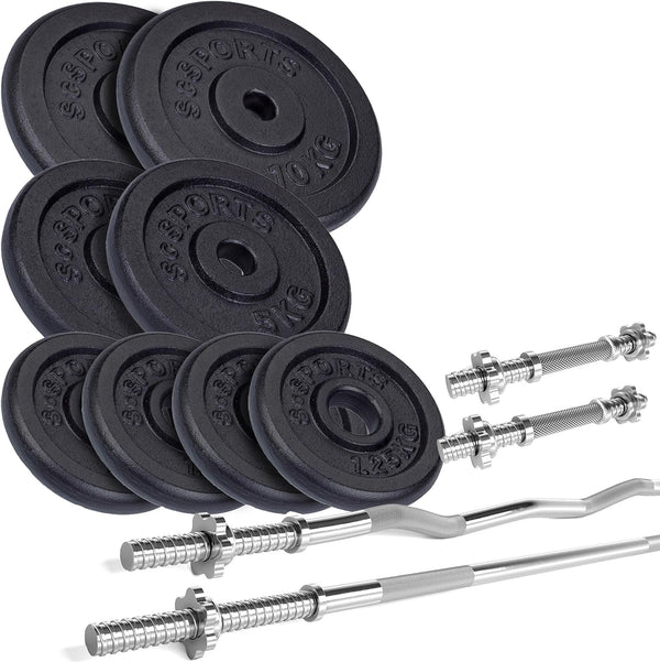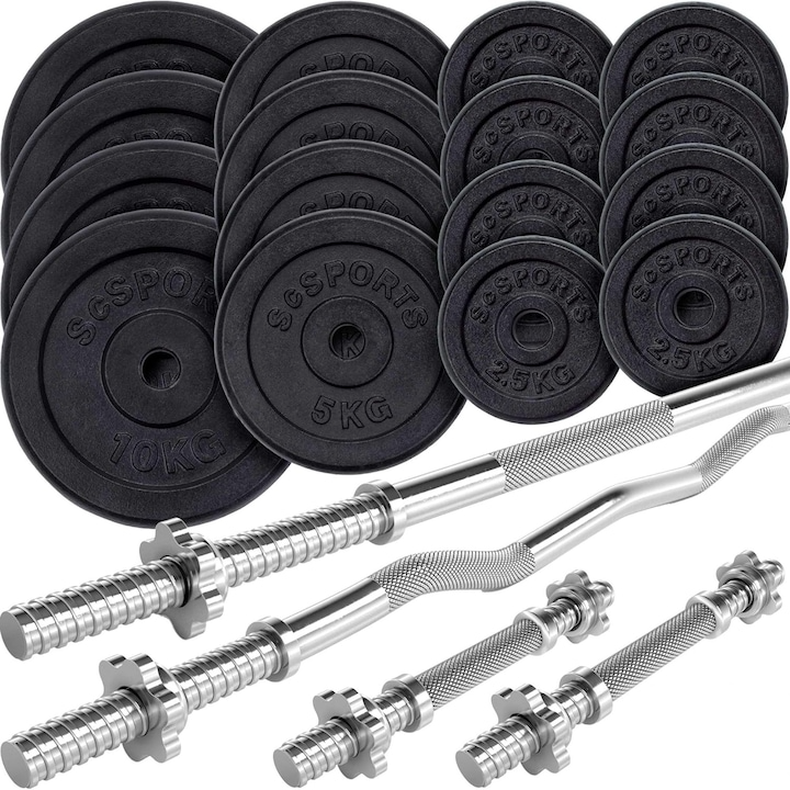 Set de haltere 35 kg, 2 gantere, bara de haltere, bara SZ, 30/31 mm, discuri de greutate, fonta ScSports