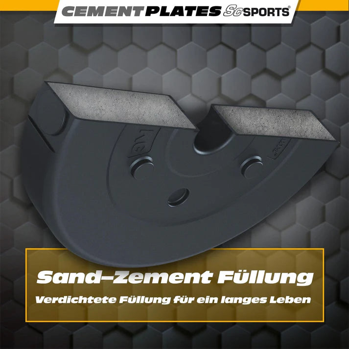 Placile cu greutati sunt fabricate din plastic de inalta calitate si umplute cu un amestec de ciment compactat. Acest lucru le face nu numai robuste si durabile, ci si delicate pe podea si silentioase. Acoperirea din plastic protejeaza podeaua de zgarieturi, iar gropitele si denivelarile de interblocare minimizeaza rotatia discurilor, ceea ce le face mai usor de ridicat de pe podea.
