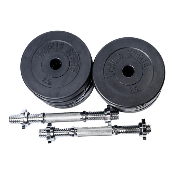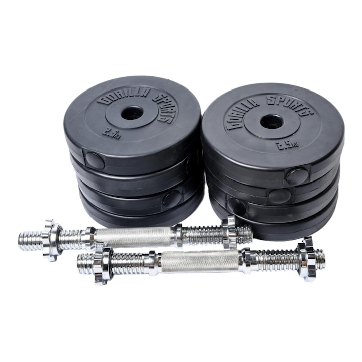 Mulți sportivi consideră cumpărarea de gantere individuală este enervantă și consumatoare de timp. Gorilla Sports are soluția ideală pentru asta: Cu un set de gantere, te asiguri că ai gantere identice în sala ta de acasă. În plus, ganterele permit și multe exerciții care altfel funcționează doar cu o bara, cum ar fi presa de bancă.