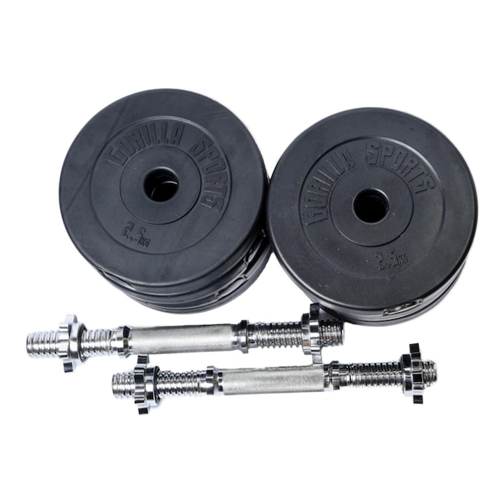 Nu mai puteți adăuga Set gantere reglabile 10 - 25 KG cu discuri din ciment Gorilla Sports în coș.