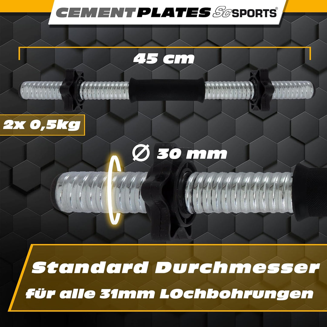 Set de greutati pentru gantere de 30 kg cu set de discuri de greutati si 2 x bare scurte pentru o calitate robusta. Alte caracteristici utile diferite variatii pentru una dintre placi sunt Mix and Match si usor de marit sau redus